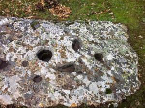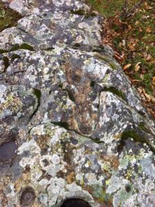 Naravno da ima objasnjenje. Ova najveca rupa u sredini je polazna tacka - znaci mesto odakle polazis a to ti pokazuje i stopalo desne noge. Gledaj u pravcu koji pokazuje palac ima dve ostave. Druga mora da bude negde gde je mali potocic ili izvor a prva je na pola puta. To su ti orjentiri. Kada nadjes gde je potocic to ti je pokazatelj za ostale daljine na tim oznakama , nesto kao mapa.