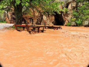 Obicno pri poplavama mulj pokriva i one vidlive znakove. Voda je puno blata. Nije to to poplava od topljenje snega. Govorim iz iskustva jer pre nekih 10 dana kad sam potrazio neke jako vidlijve zankove (stopala vesto isklesana da su izgledala kao da je cipela gazila po mekoj steni) od n jih su ostale samo one koje su bile dleko od poplave!